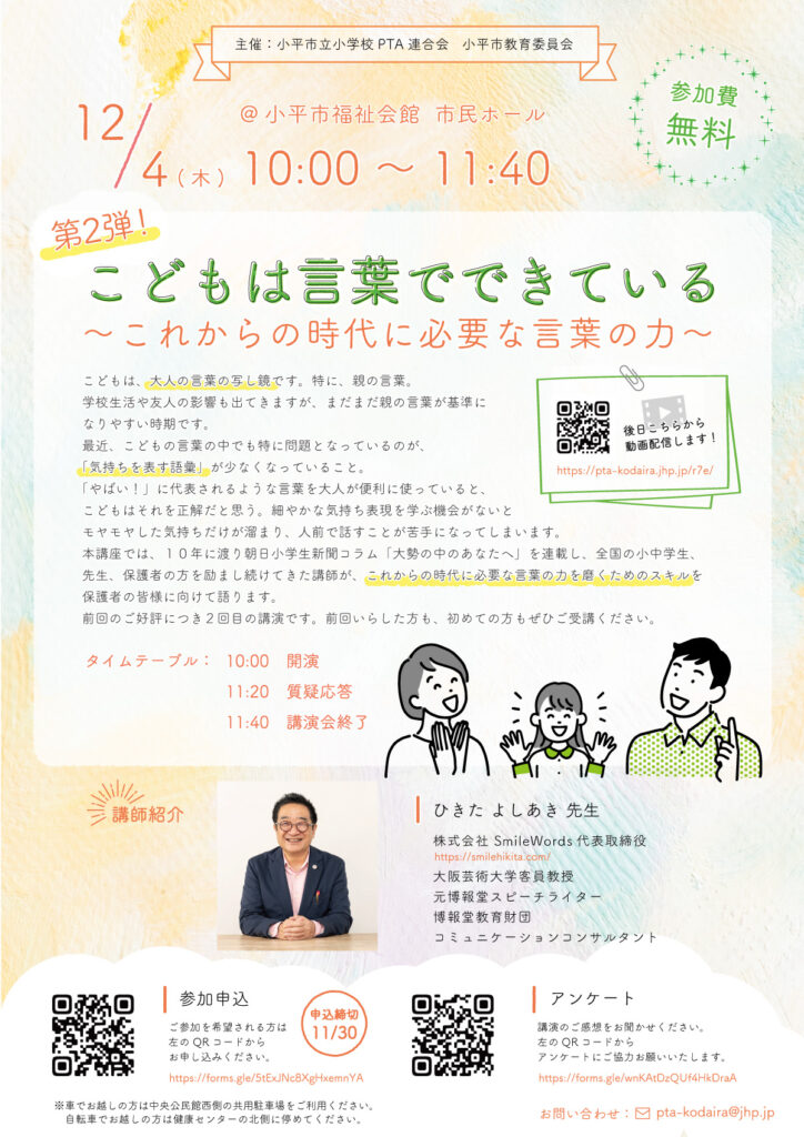 令和7年12月4日(木)に小平小P連主催の講演会を開催しました。
